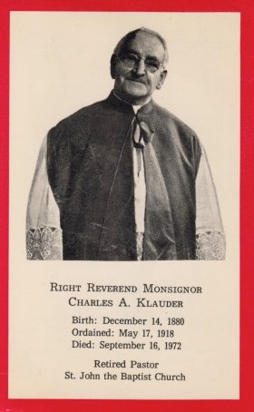 On sunny days in the 1950s, his black priestly robes rippling in the breeze, the Right Reverend Monsignor Charles A. Klauder played baseball in the parking lot with the neighborhood boys. When pitching, he didn’t so much throw the ball as serve it up, so the hitter might do his best. With the bat, he had a smooth but gentle swing.