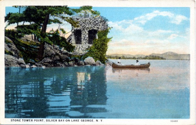 Above, another J.S. (Jesse) Wooley postcard of the Stone Tower, also known as the Spoon Holder or Spooning Castle; this one can also be found on page six of Silver Bay Association: A Pictorial History 1900-1935 (Silver Bay Association, 1992).